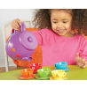 Hver kop og underkop er i samme farve og med samme form, så de kan sættes sammen, hvilket udfordrer børnenes finmotorik