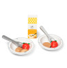 Sættet indeholder: 2 Skåle, 2 skeer, 2 jordbær, 3 kammerjunkere og 1 koldskål.
