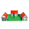 En stor og flot bondegård i træ, hvor bygningerne let sættes fast på pladen. Taget kan løftet af, så der er let adgang til laden eller dyrene i stalden. Bondegården kan danne ramme for flere timers fantasifuld rolleleg.