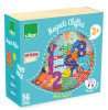 56 stk. farverige træmagneter med tal og regnesymboler.