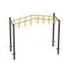 76220-bøjlerne fra NinjaWorkout Master-kollektionen er et dynamisk element, der er en stor udfordring for folk, der leder efter en test af deres styrke og koordination. Massive stålbøjler ophængt i højden giver mulighed for at bevæge sig fra den ene til den anden, aktiverer musklerne i arme og ryg og forbedrer kroppens koordination. Takket være brugen af ​​materialer af høj kvalitet, der er modstandsdygtige over for vejrforhold og UV-stråling, er fælgene ekstremt holdbare og sikrer langvarig funktionalitet under alle forhold. Dette er et nøgleelement i NinjaWorkout-banen, som giver dig mulighed for at opbygge udholdenhed og præcision i bevægelse.