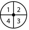 Cirkel som er opdelt i fire lige store felter med tallene 1 til 4 i farven hvid. God til boldspil og forskellige lege.