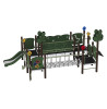 121138RC-sættet fra QUECO-kollektionen er en perfekt løsning til de yngste legepladsbrugere, der kombinerer sjov med naturmotiver som træer, fugle og redekasser. Udstyret med rebbroer, indgangsramper, klatrepassager og interaktive manipulationsvægge tilbyder det børn en række muligheder for fysisk og sensorisk aktivitet. Strukturen er lavet af økologiske materialer, herunder HDPE-paneler, som er holdbare og vejrbestandige. Sættets naturlige farver - grøn, brun og accenter i gul og rød - passer perfekt til omgivelserne og skaber et harmonisk legeområde. Takket være den stabile konstruktion og skridsikre overflader sikrer enheden fuld sikkerhed under brug.