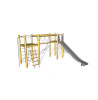 Klatretårn med forskellige klatreelementer, gangbro, glidestang og rutschebane