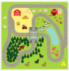 Læringsmåtte med landskab og togbane, som børnene kan lege på. Måtterne er skridsikre og kan vaskes.