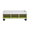 Legebordet har en stor overflade til leg og andre aktiviteter, samt i alt 6 rum til opbevaring.