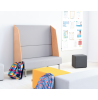 De høje sider rundt om sofaen skaber en afskærmende effekt, der hjælper med at dæmpe støj og reducere visuelle forstyrrelser – perfekt til institutioner, hvor rum ofte bruges til mange aktiviteter på én gang.