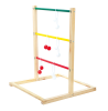 Sæt spillerammen op, og placer det med den afstand som du ønsker der skal være til rammen med de tre tværpinde i hver sin farve. Jo længere afstanden bliver til spillerammen jo sværere bliver udfordringen.