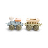 Solidt togsæt med lokomotiv og vogn, i nye trendfarver, lavet af svanemærket bioplast (sukkerrør).